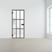 Uitvoering van een glazen binnendeur met steellook voor opdek kozijn